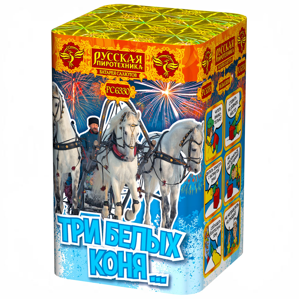 - Классические новогодние фейерверки - батареи салютов различного калибра и с различным количеством залпов. Расположение мортирок преимущественно вертикальное, некоторые из них могут быть заряжены на несколько выстрелов по принципу римской свечи, что позволяет увеличить количество залпов при скромных габаритах батареи.